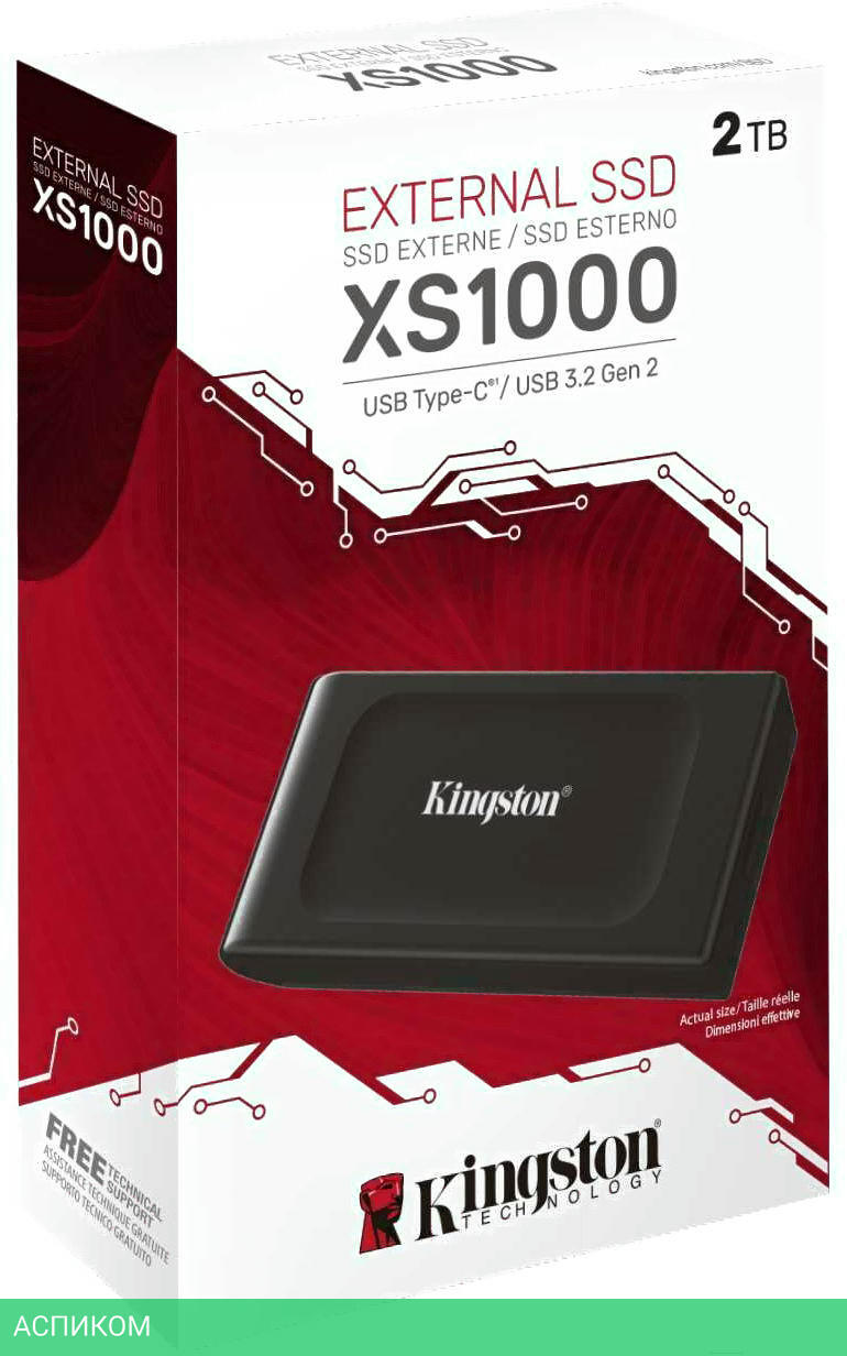 Внешний накопитель Kingston XS1000 2TB (SXS1000/2000G)/1.8"/USB 3.2 Gen2 Type-A (10 Гбит/с)/металл, пластик