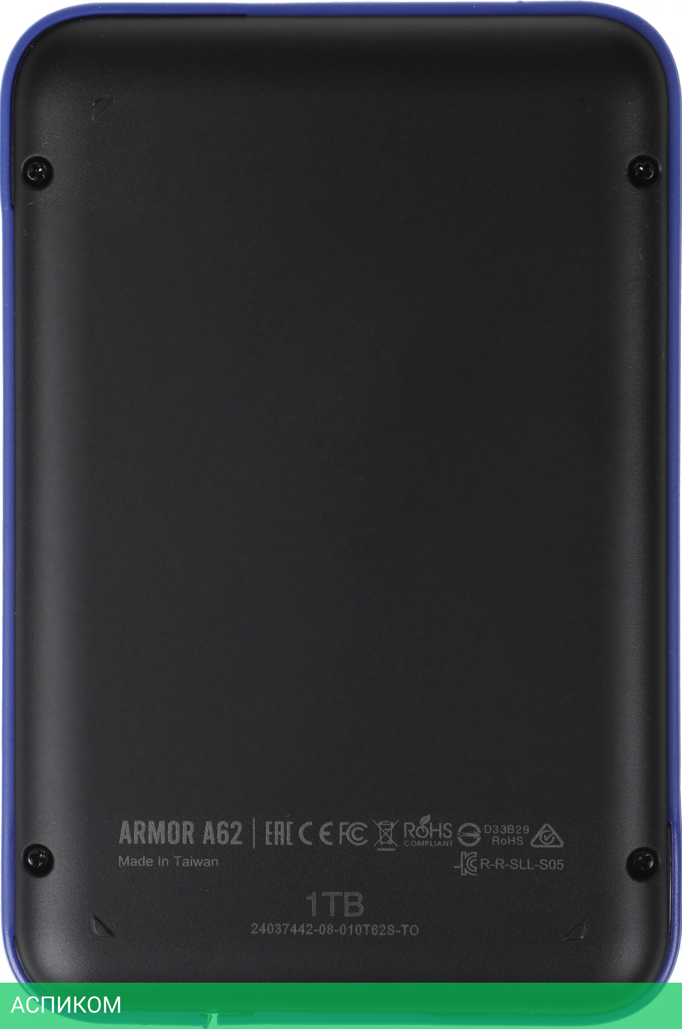 Внешний накопитель Silicon Power Armor A62 1Tb черный/синий (SP010TBPHD62SS3B)/2.5"/USB 3.2 Gen1 Type-A (5 Гбит/с)/пластик