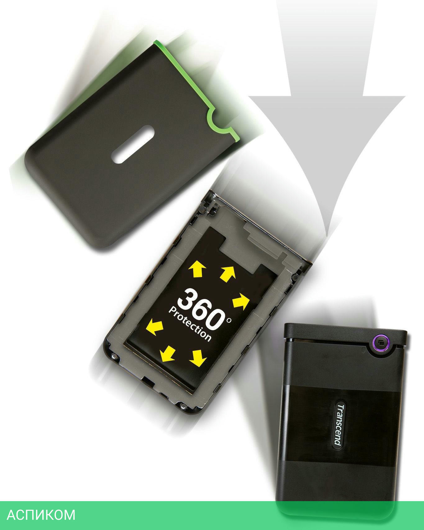 Внешний накопитель Transcend TS2TSJ25M3S серый/2.5"/USB 3.2 Gen1 Type-A (5 Гбит/с)/пластик, резина