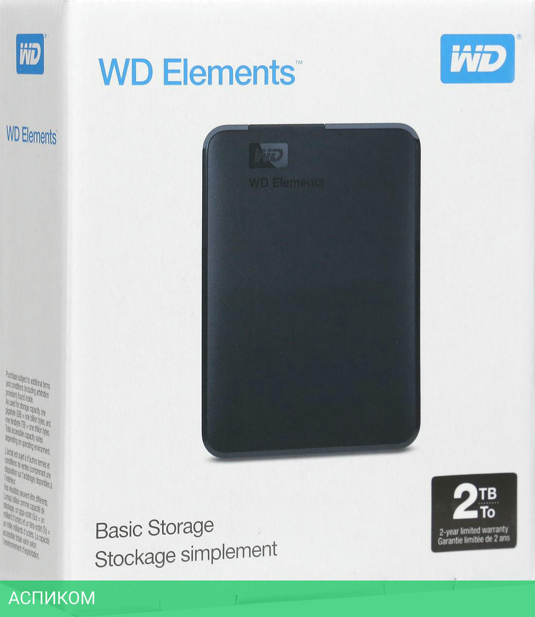 Внешний накопитель WD 2TB WDBU6Y0020BBK-WESN/2.5"/USB 3.2 Gen1 Type-A (5 Гбит/с)/пластик