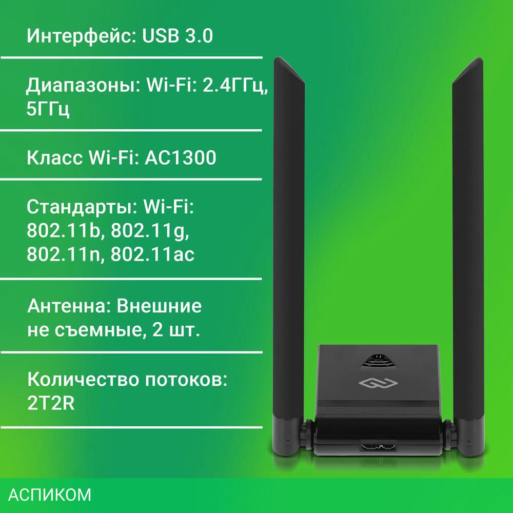 Wi-Fi адаптер / USB 3.0 / 802.11ac; 802.11n; 802.11a; 802.11g; 802.11b / 2.4; 5 / 1300.0