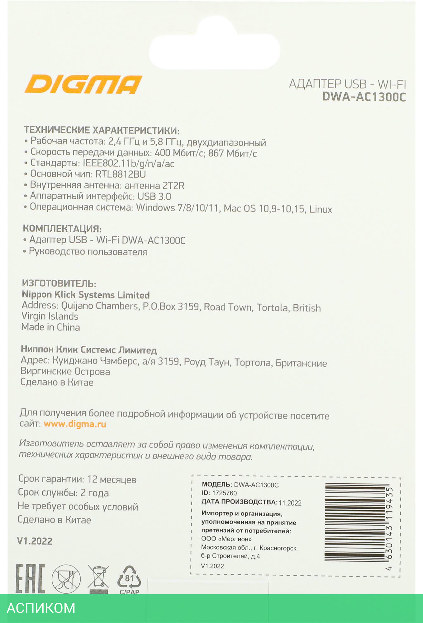 Wi-Fi адаптер / USB 3.0 / 802.11ac