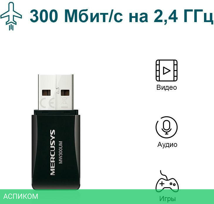 Wi-Fi адаптер / USB 2.0 / 802.11g; 802.11n / 2.4 / 300.0