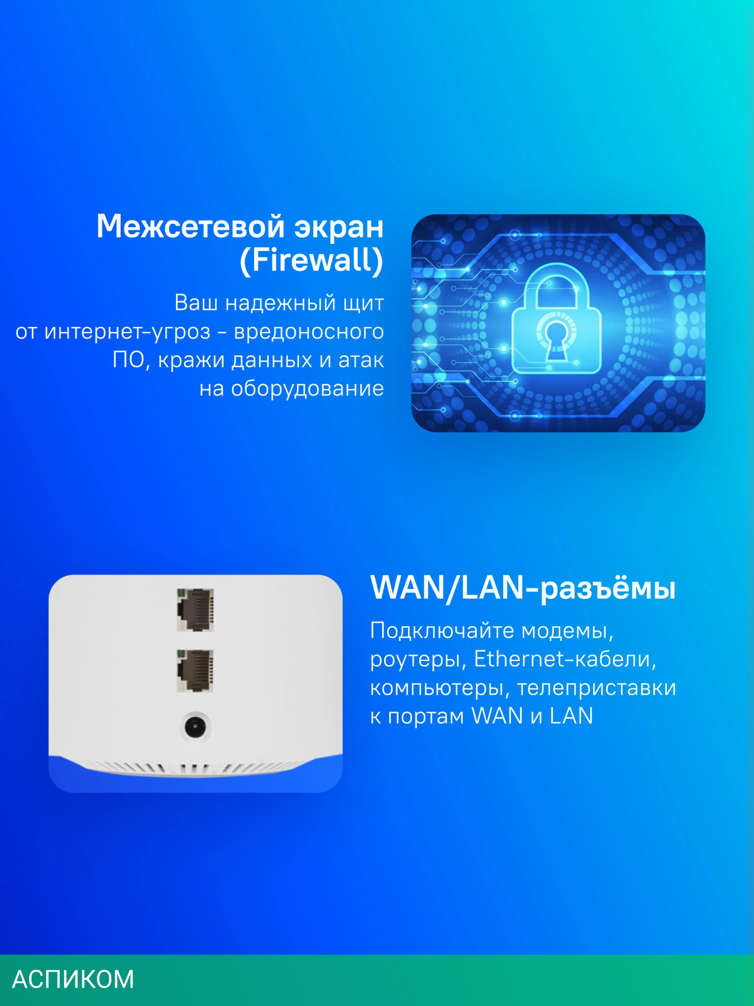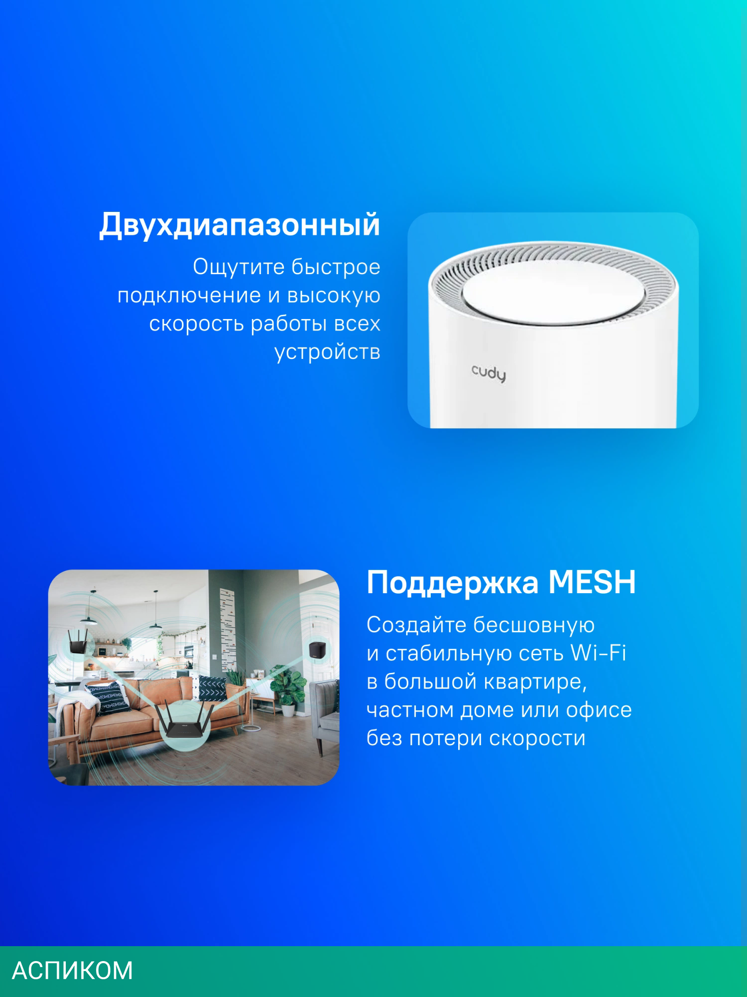 Роутер Wi-Fi 6 Mesh АХ1800, сетевой адаптер питания от 220В (АС), RJ45 Ethernet-кабель, краткое руководство по установке.