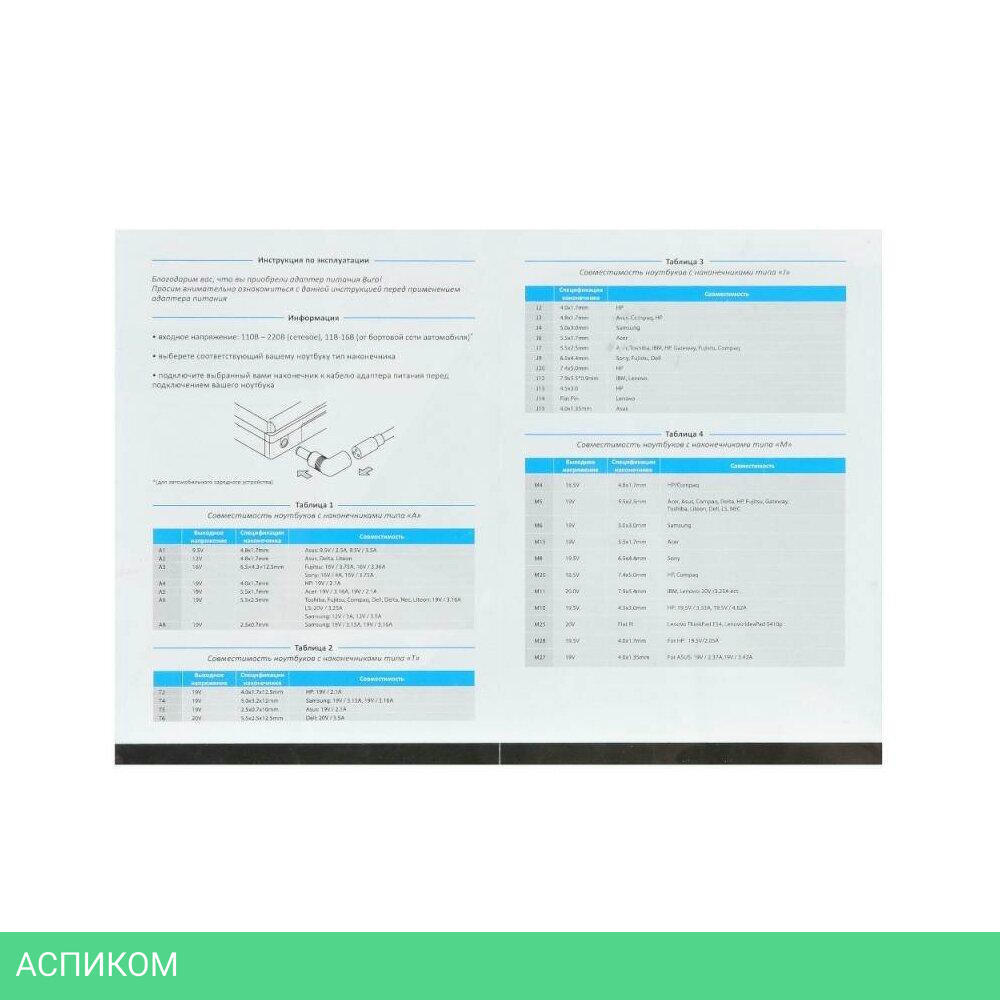 зарядное для ноутбуков / Acer; ASUS; Dell; Fujitsu; HP; Lenovo; Samsung; Sony; Toshiba / 1.35x4.0 мм, 1.7x4.0 мм, 1.7x4.8 мм, 1.7x5.5 мм, 2.5x5.5 мм, 3.0x4.5 мм, 3.0x5.0 мм, 4.4x6.5 мм, 4.5x11 мм (Slim Tip), 5.0x7.4 мм, 5.5x7.9 мм