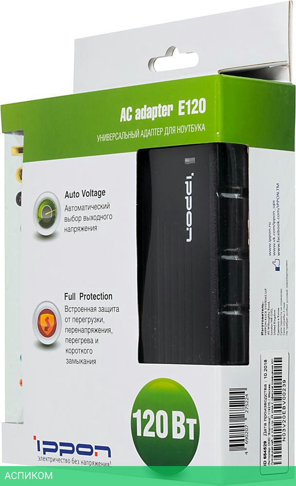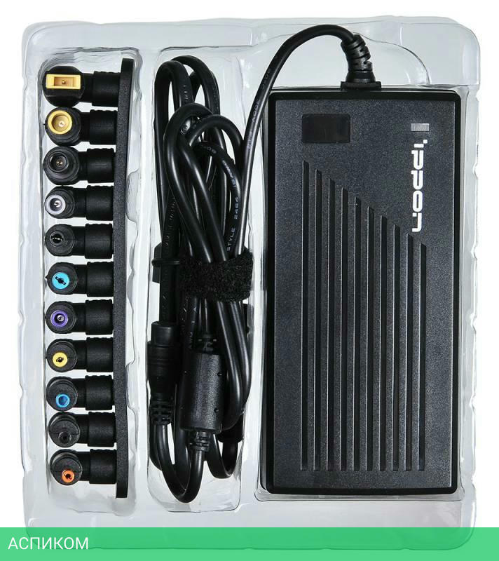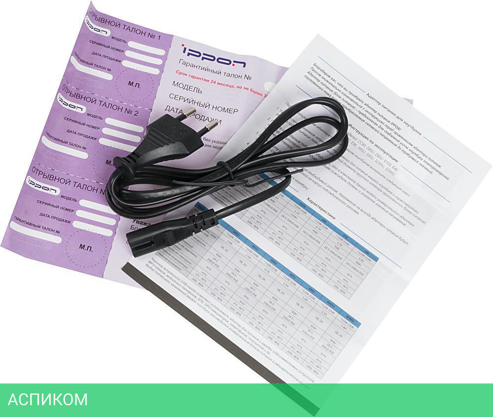 Блок питания для ноутбука Ippon E120, шнур питания для подключения к сети переменного тока, комплект выходных разъемов M1-M8, руководство пользователя