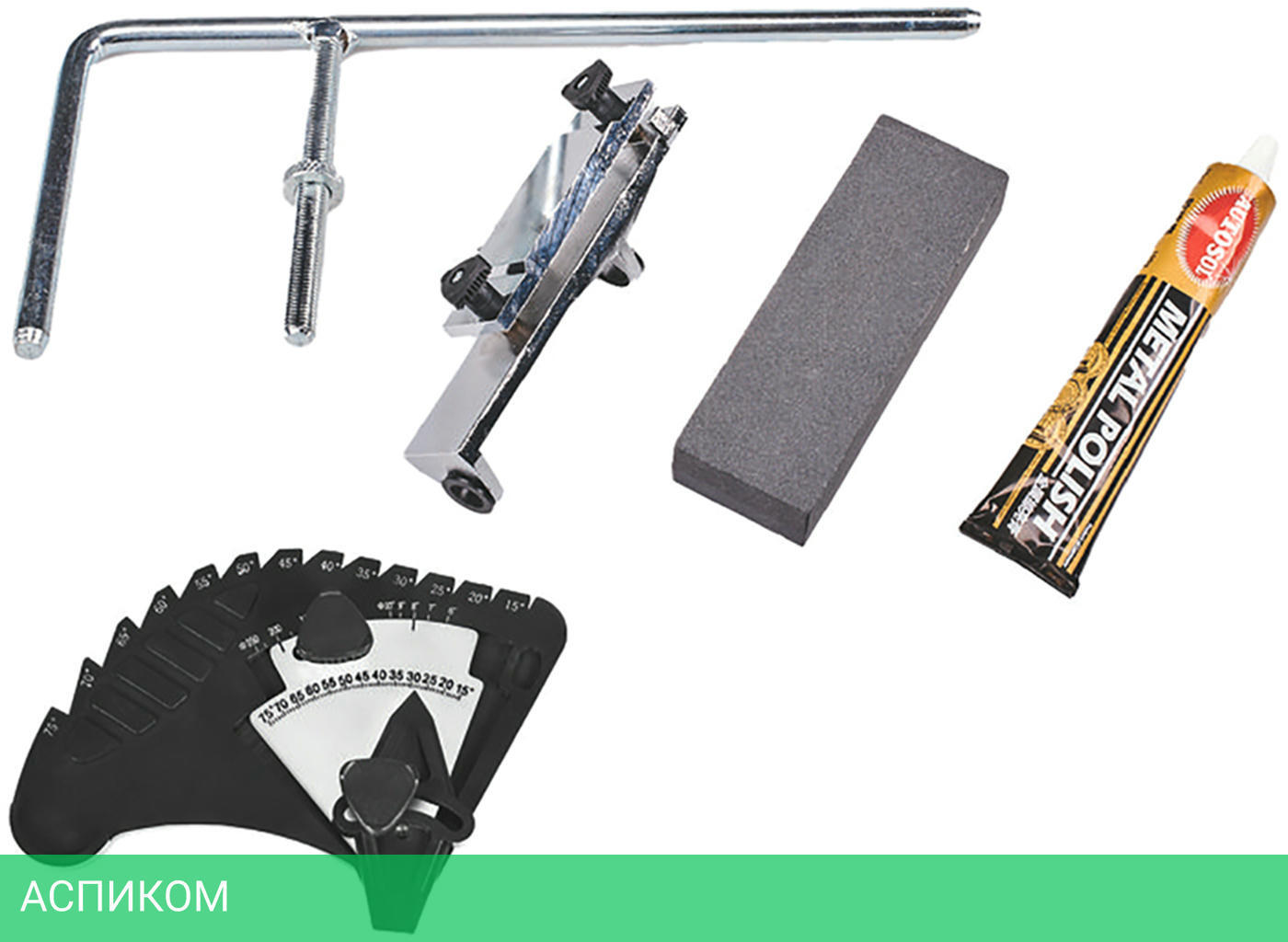 точило; кожаный шлифовальный круг; мелкозернистый мокрый шлифовальный круг; угломер; картонная коробка; инструкция по эксплуатации; гарантийный талон