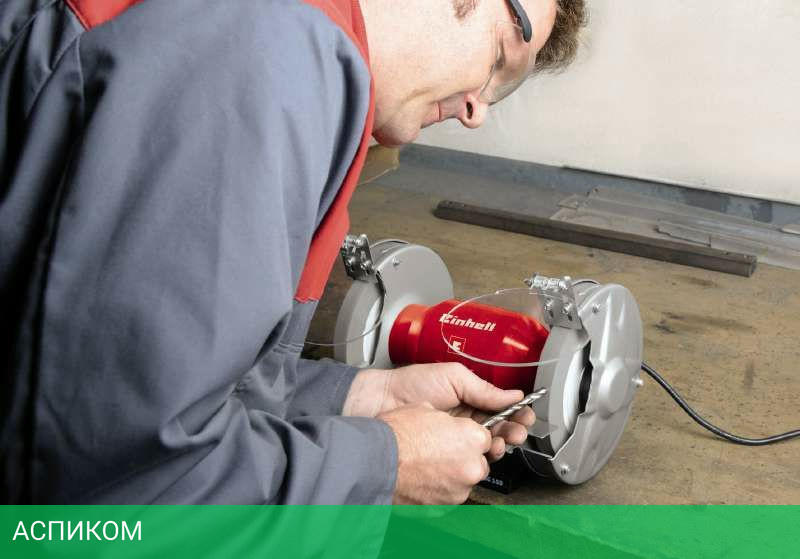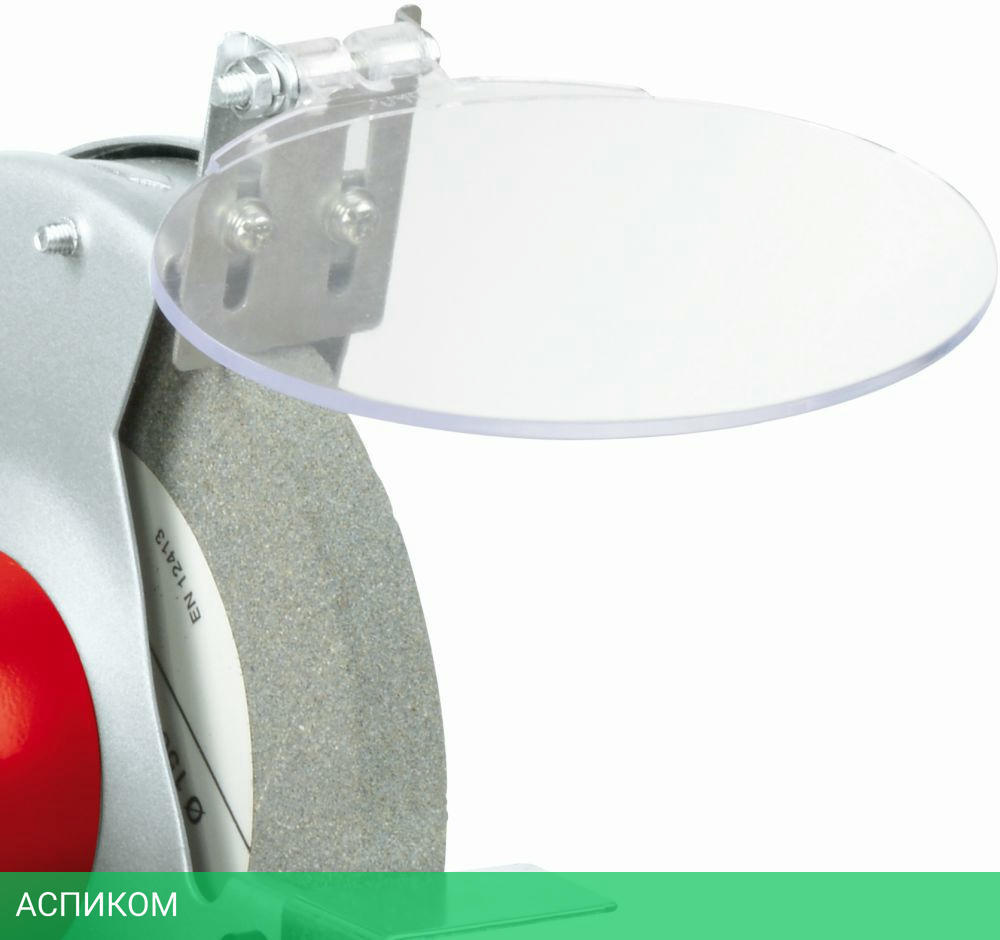 шлифовальный диск зернистостью K36;два прозрачных стекла для защиты от искр и пыли;картонная коробка;шлифовальный диск зернистостью K60;инструкция по эксплуатации;рабочие упоры